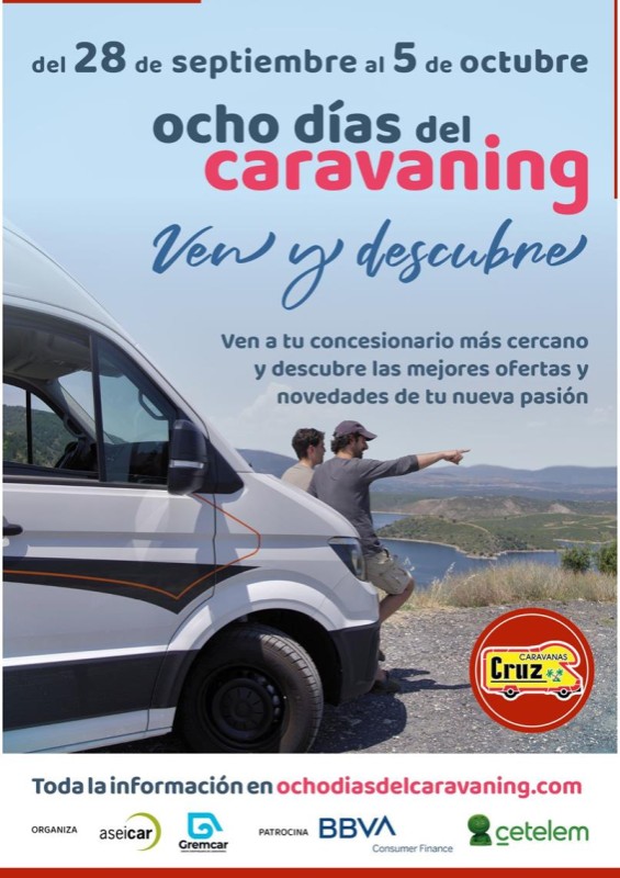 We are excited to announce that Caravanas Cruz is joining the ‘8 days of caravanning’ campaign, an event organised by ASEICAR and GREMCAR, which you won't want to miss. From 28 September to 5 October, our motorhome, caravan and campervan dealers from all over Spain will be joining forces to offer you a unique experience, and we'll be there to welcome you with open arms!