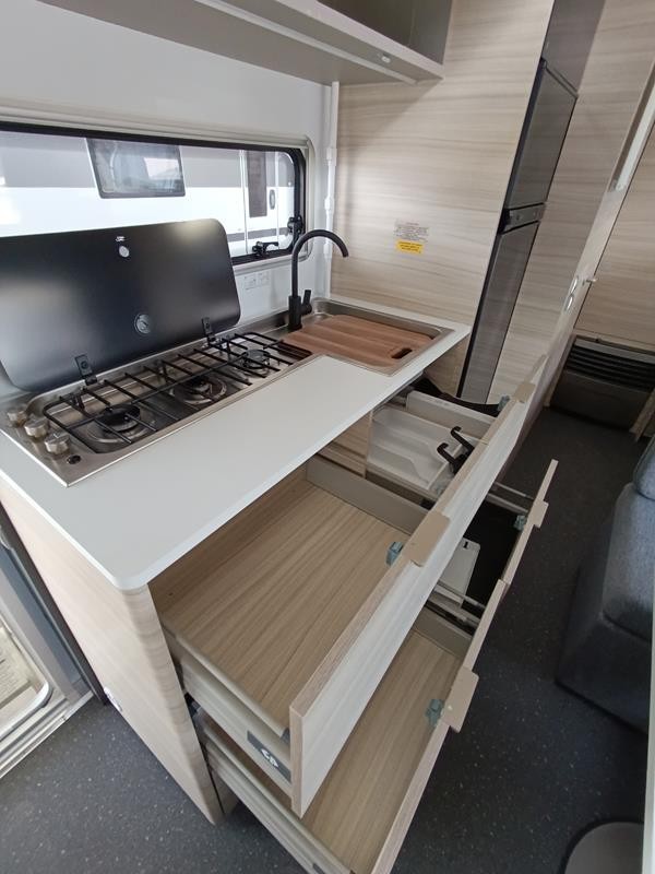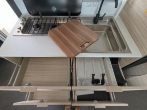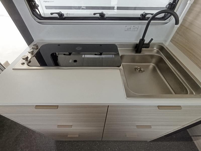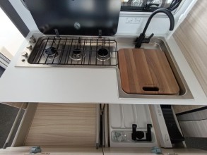 • 3-burner cooker + electric ignition + glass lid + stainless steel sink