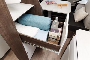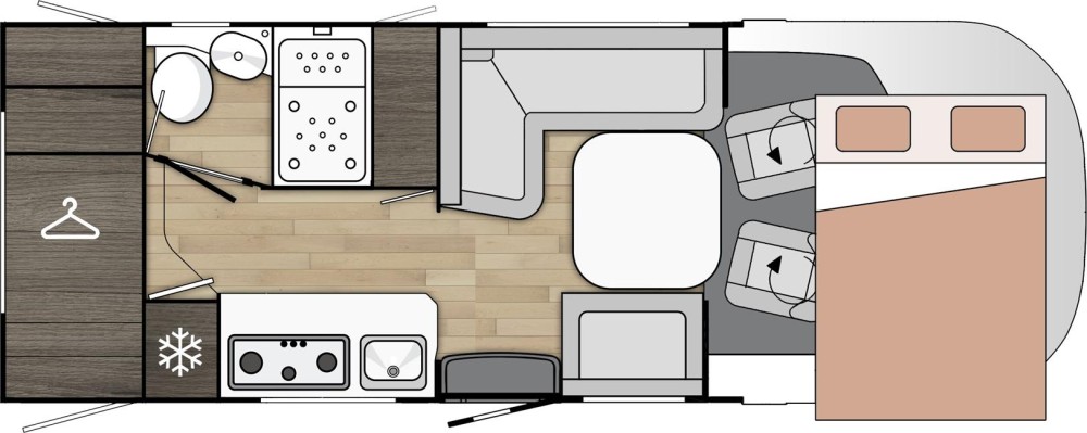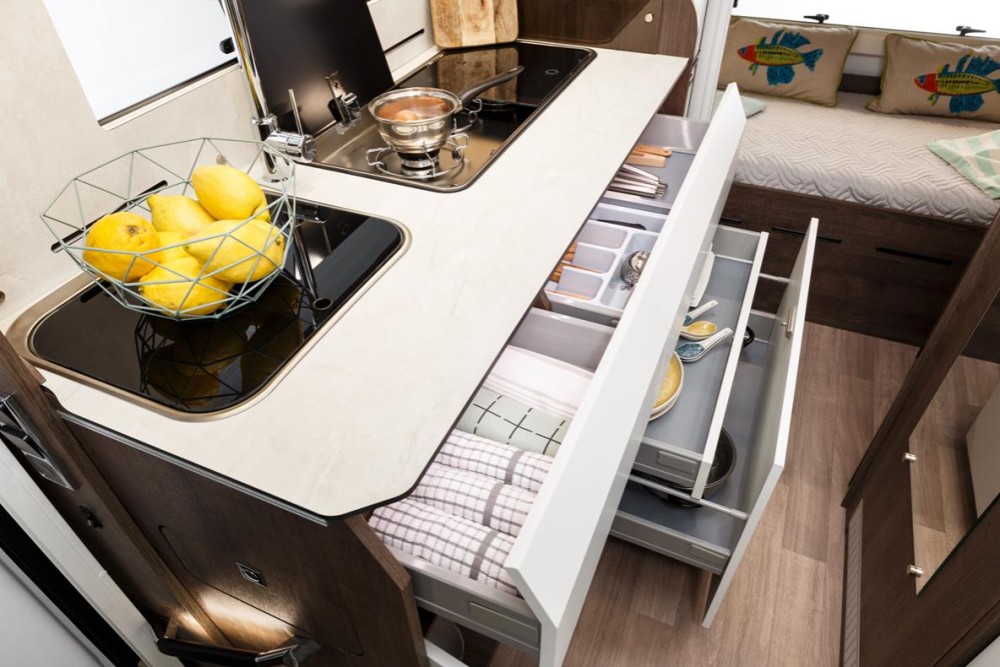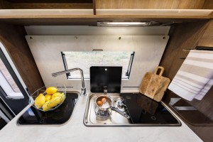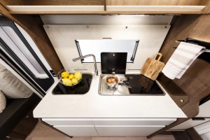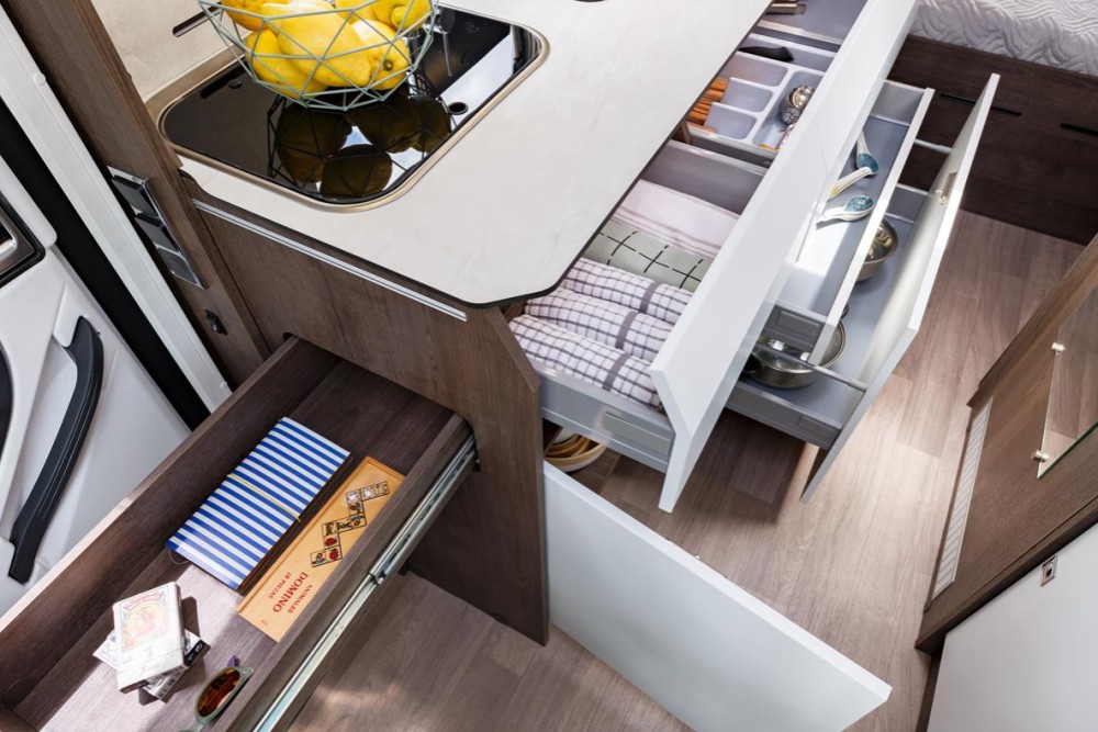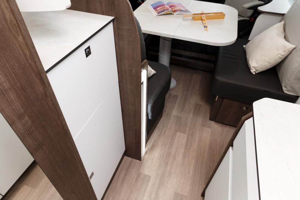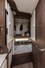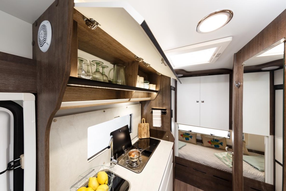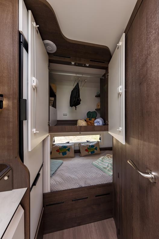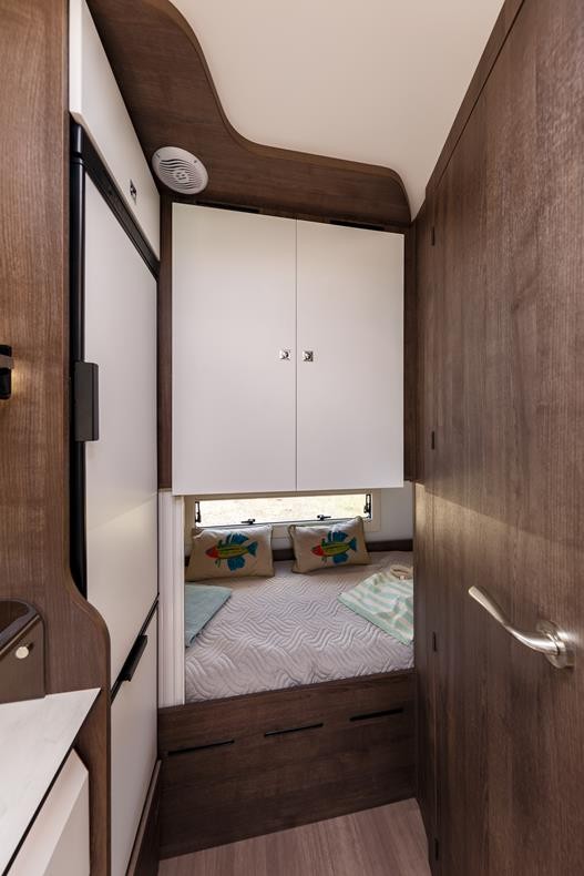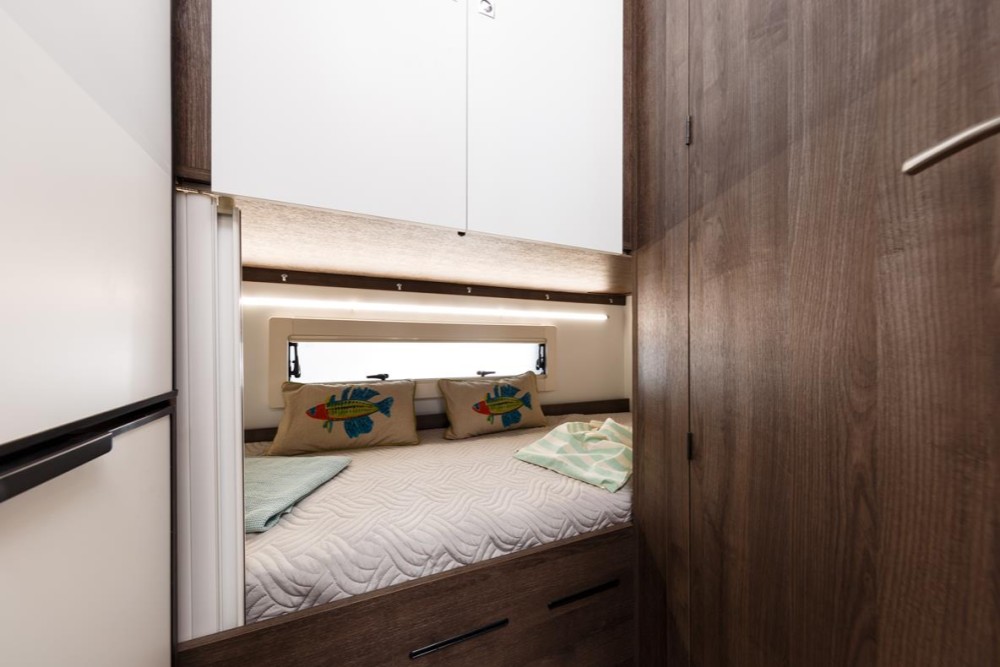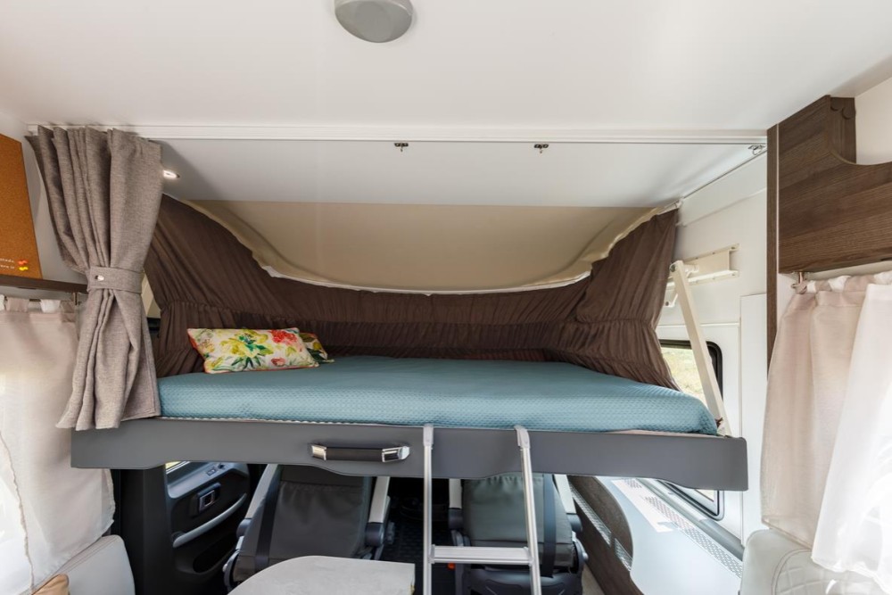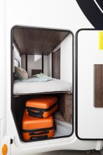 ALFA EQUIPMENT: 16" alloy rims + Front bumper painted cabin color + Headlamps with black outline + Front fog lamp + Black radiator grille with chrome inserts with black skid plate + Traction Plus + Hill Descent Control + Radio DAB + Bluetooth + USB + 7" touch screen + Steering wheel radio control + Cell door with 2 locking points, concealed hinges, central locking, window, mosquito net and bin + Rear with high-end design and spoiler + New ALFA exterior decoration + Cell speakers + TV support + 3 living room cushions and 2 bedroom pillows + Upholstered panel with LED lighting in bedroom