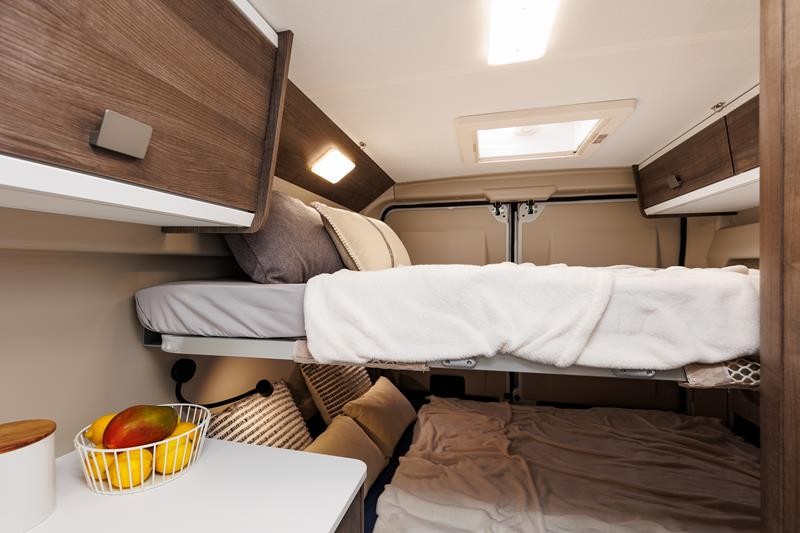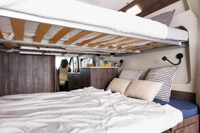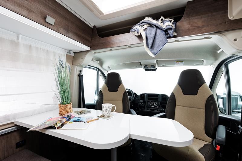 Up Pack: Pleated cabin darkening + ISOFIX in saloon seats + Reversing sensors + Solar panel + Electric step + Folding table extension + Cabin seat covers + Large skylight in dinette + Pleated mosquito net on side door + Awning