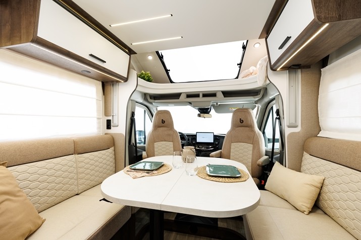 Plus Pack: 200W solar panel + MPPT + Pleated cabin blinds + XL living area door with 2 locking points, window, blind and waste bin + Cabin covers + LED exterior light + Directional halogen headlights + Rear parking sensors + Interior loft lighting + Blinds + ISOFIX + TV mount + Pre-installation for 2nd living area battery + Skyview skylight + Lockable glove compartment + Dashboard and "trend" finishes + Bumpers and side mouldings painted in the same colour as the bodywork