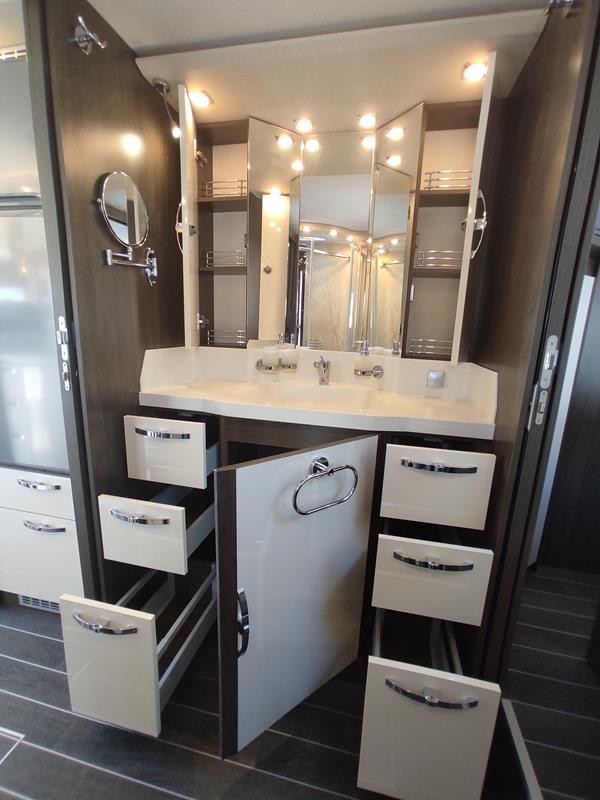 - Electric television in the passenger's side upper cabinet, for 32" Led tv