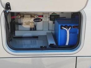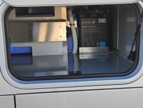 - " Li-Power " power pack ( Iveco Daily ) with 2 x 210 Ah lithium iron phosphate battery ( total 420 Ah ) instead of 1 x 210 Ah gel battery, with inverter 12V / 230 V sine wave continuous AC power supply 3000 W and remote control.