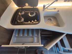 - HEKI 3 trim with 4 LED spotlights and dimmer above the living area