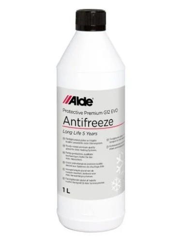 Alde le ofrece su propio anticongelante, un fluido glicol premezclado para su uso hasta -37 °C. La calidad del glicol líquido de Alde para su sistema de calefacción Alde tiene muchos beneficios, incluyendo la protección por un largo período de 5 años.Elglicol crea una capa de protección a largo plazo para la caldera y los tubos interiores de de aluminio, no se gelifica ni se descompone, y es respetuoso con el medio ambiente.
