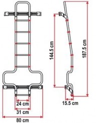Es una escalera exterior de alta calidad fabricado en aluminio anodizado con ninguna posibilidad de corrosión. Se suministra con la fijación de las barras que se sujetan alrededor de la puerta trasera izquierda para una instalación fácil y rápida. Se puede combinar con 200 Carry-Bike DJ.