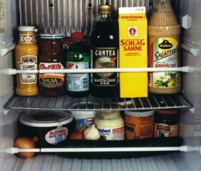 2 Barras telescópicas de sujeción. De aluminio blanco con tapas de caucho. Se fija en el frigorifico, en los altillos, o en los muebles y evita el deslizamiento de los objetos.