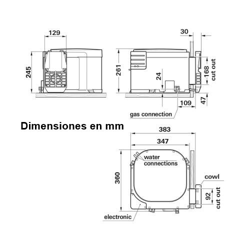 Es un potente calentador de gas que calienta el agua en su caravana o vehículo vivienda en muy poco tiempo, sin necesidad de corriente de la red. El calentador por gas está perfectamente aislado, de manera que no se pierde apenas calor.