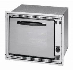 Termostato, iluminación interior, encendido electrónico de 12V., sistema de encendido de seguridad, grill, puertas con bisagras abajo, conexión a chimenea, puerta de vidrio con bloqueo de seguridad, bandeja de horneado y estante de horno incluidos en el suministro.