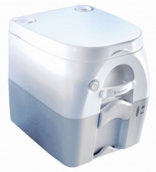 Inodoro portátil con ahorro de espacio con descarga de 360º a presión.