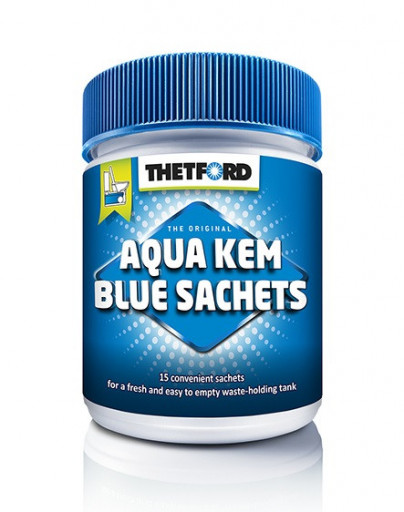 Sobres para el depósito de residuos. Aqua Kem Sachets son sobres solubles en agua y rellenos de polvo, facilitando y economizando, por consiguiente, la dosificación. Los sobres se introducen directamente en el depósito de residuos, disolviéndose con rapidez. Un sólo sobre basta para un depósito de residuos de 20 litros. Una dosis funciona, en caso de uso medio, un máximo de cuatro a cinco días.