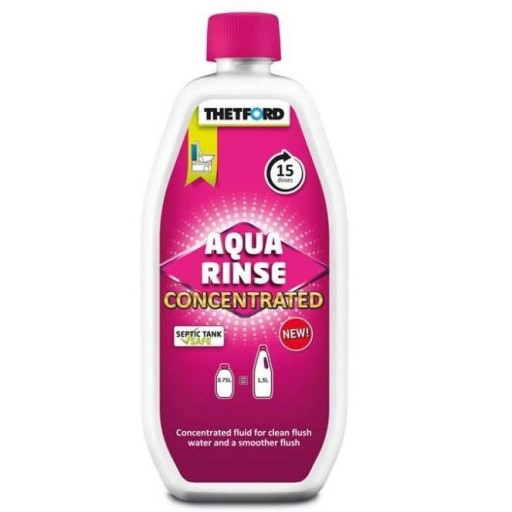 Líquido para el depósito de agua de descarga. Aqua Rinse ofrece mejor higiene, una descarga más limpia y un fresco olor a lavanda en el depósito de agua de descarga. Aqua Rinse deja una capa protectora en la taza del inodoro, evitando así la formación de depósitos. Además, el efecto lubricante facilita la apertura y cierre de la válvula del depósito de residuos. Aqua Rinse también mantiene su eficacia tras su