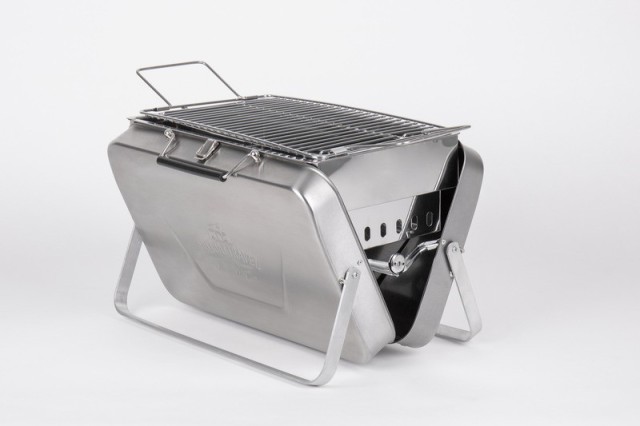 Barbacoa portátil de carbón fabricada en acero inoxidable.