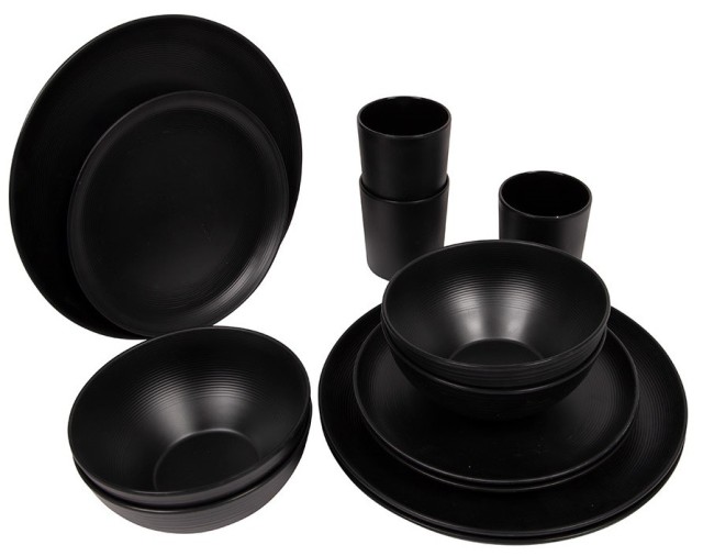 El diseño de este juego de vajilla es súper exclusivo porque no es brillante, sino mate. El set contiene platos, tazones y tazas para 4 personas. Apta para lavavajillas, en el estante superior a baja temperatura. No debe usarse en hornos de microondas.