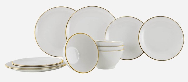 Una elegante vajilla con un detalle dorado de la colección Linea line. 100% melamina de alta calidad, prácticamente irrompible y resistente a los arañazos. El juego consta de 12 piezas. La vajilla es insonorizada e higiénica gracias a la solución antideslizante reemplazable. Además, el juego de vajilla viene con una práctica y lujosa bolsa de transporte.