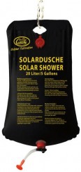 Ducha portátil y plegable. Se calienta con el sol en 2 o 3 horas el contenido de agua a aproximadamente a 30 ° C. Cierre superior y en la cabeza de la ducha. El agua cae con suspensión. Litros de capacidad aproximadamente 20.
