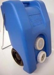 Prático depósito portátil de 23 litros para agua limpia equipado con nuevo y cómodo tapón de descarga.