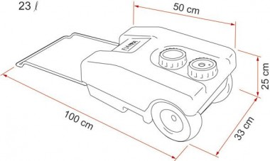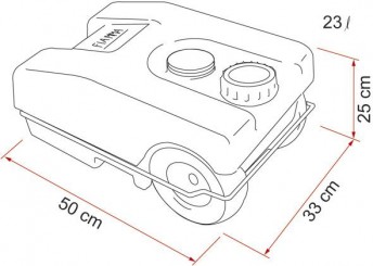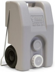 Práctico depósito portátil de 23 litros para aguas grises con el nuevo y cómodo tapón de descarga.