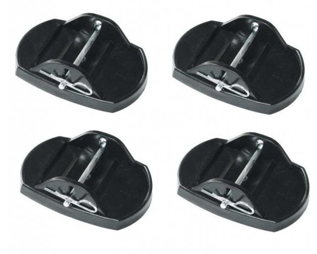 Juego de 4 apoyapatas anti-insectos con 4 pasadores para la fijación en las patas estabilizadoras del vehículo.