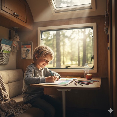 La autocaravana es un espacio reducido, pero con un poco de ingenio, puede ser el paraíso de los niños.
