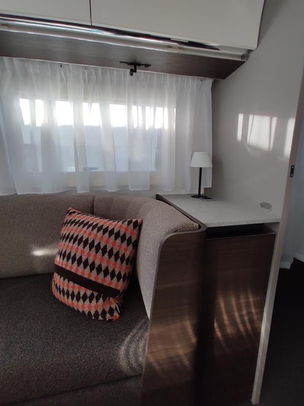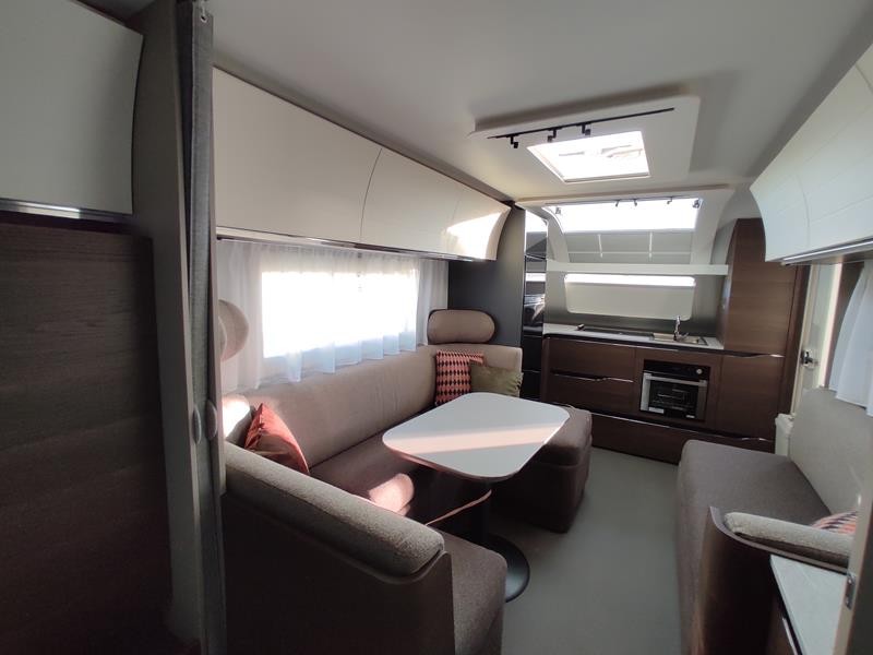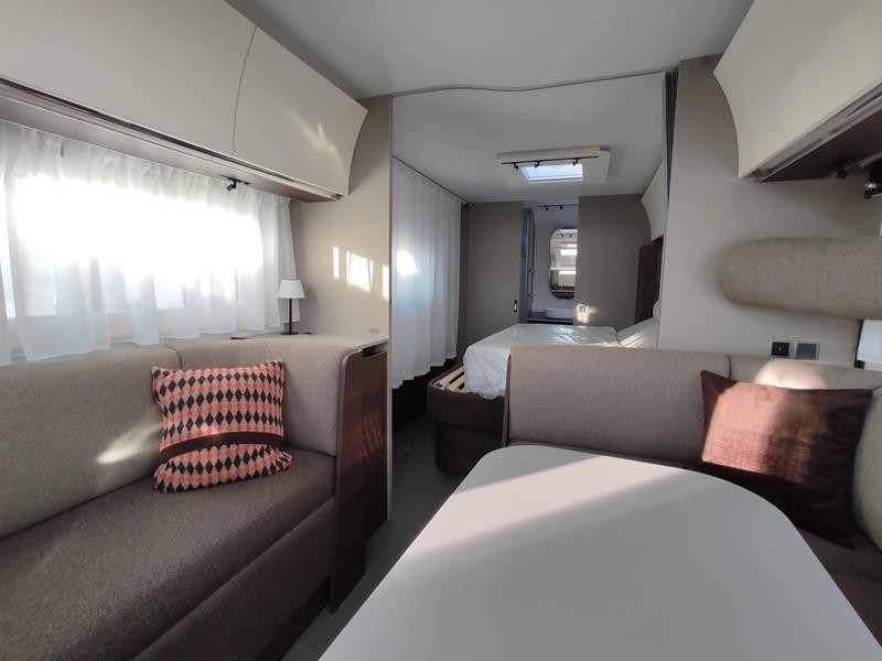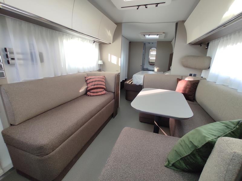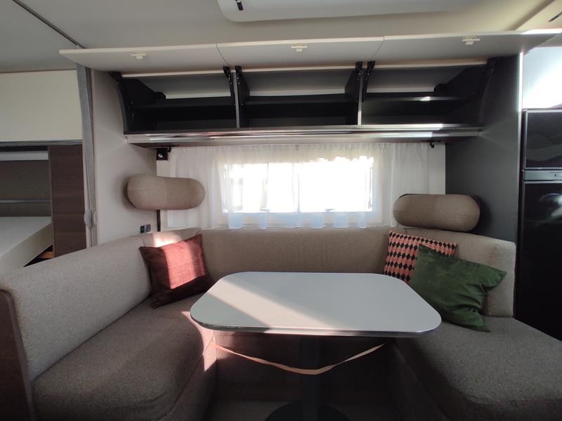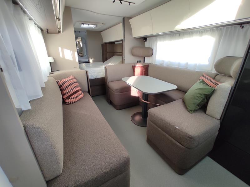 • Mesa con pata elevable telescópica en dinette y dinette en U