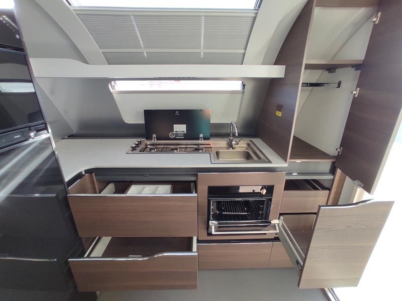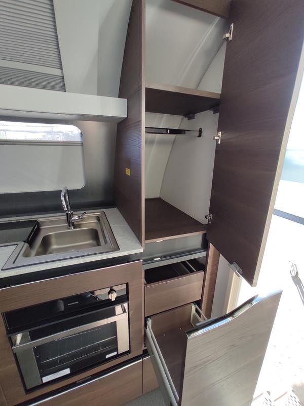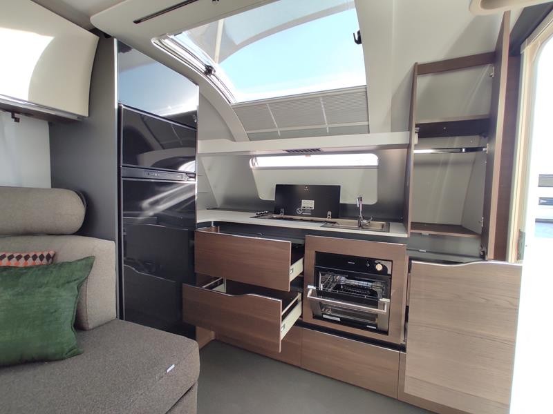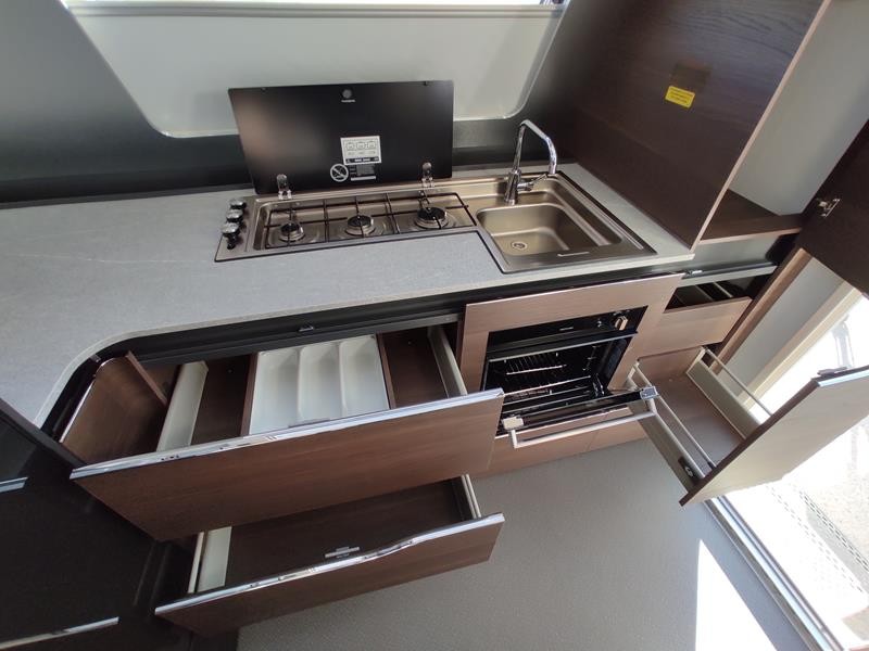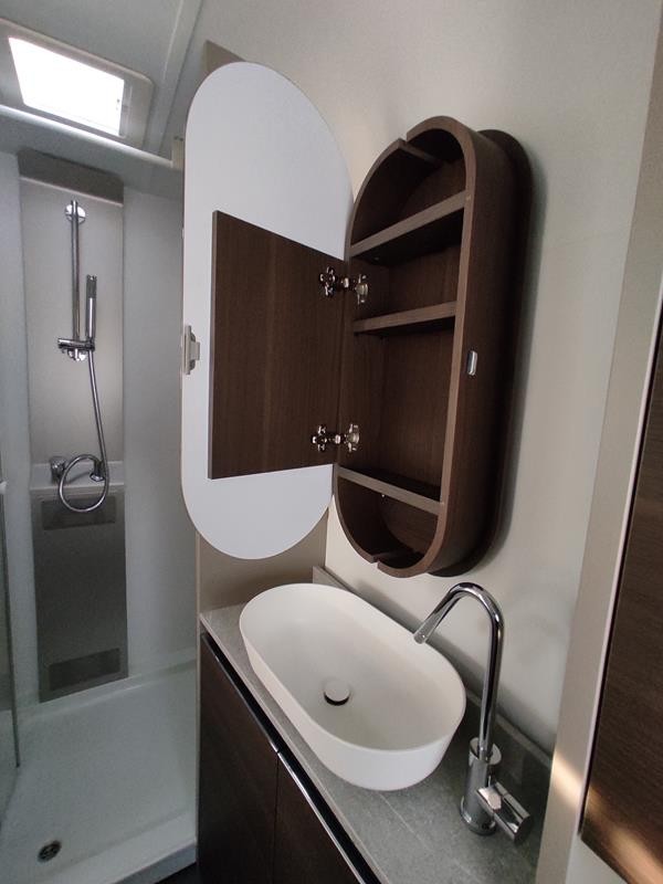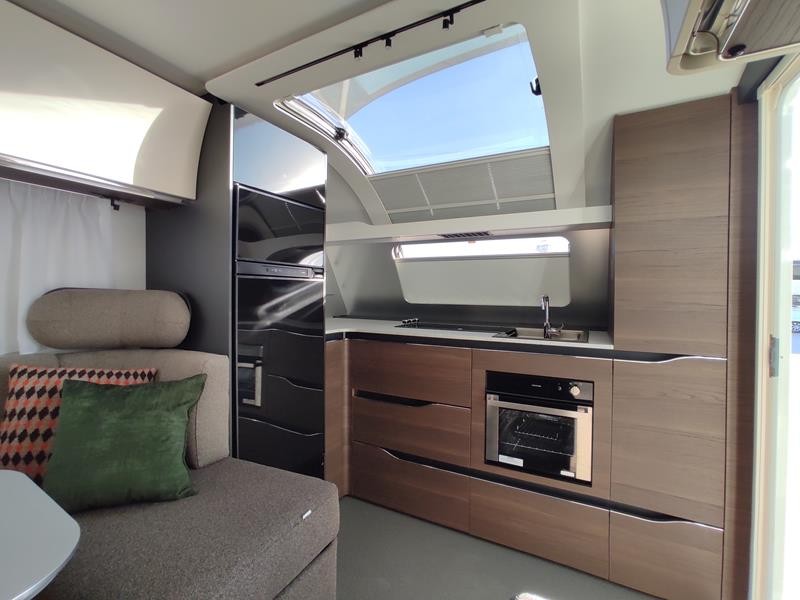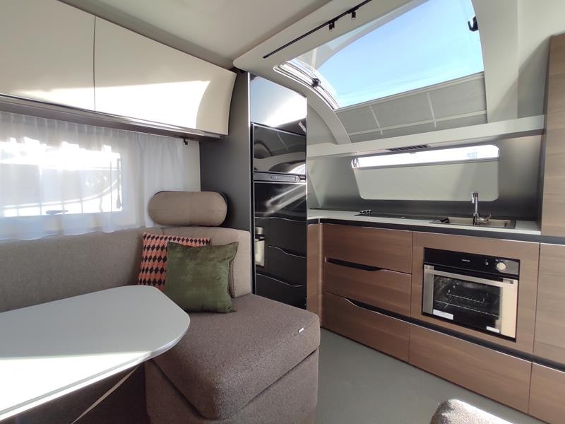 • Mesa con pata elevable telescópica en dinette y dinette en U