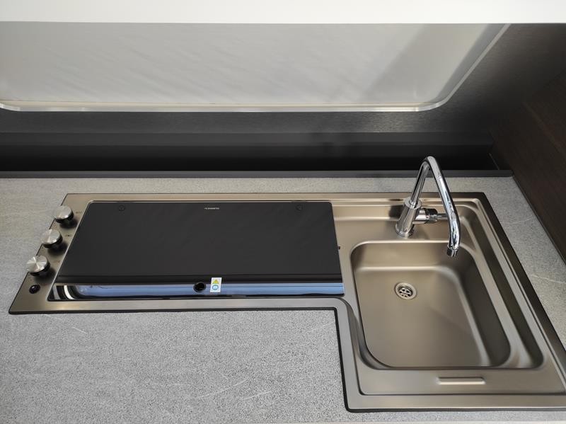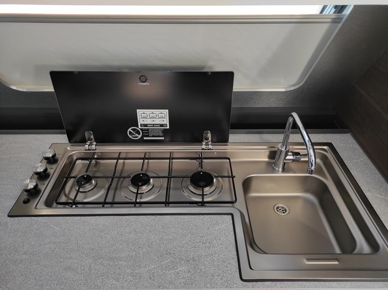 • Cocina 3 fuegos ignición eléctrica + tapa vidrio + fregadero acero inoxidable