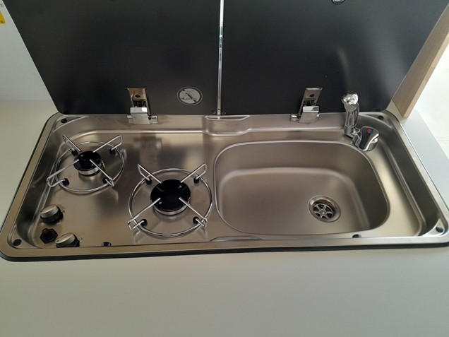• Cocina 2 quemadores SMEV, tapa cristal / Fregadero