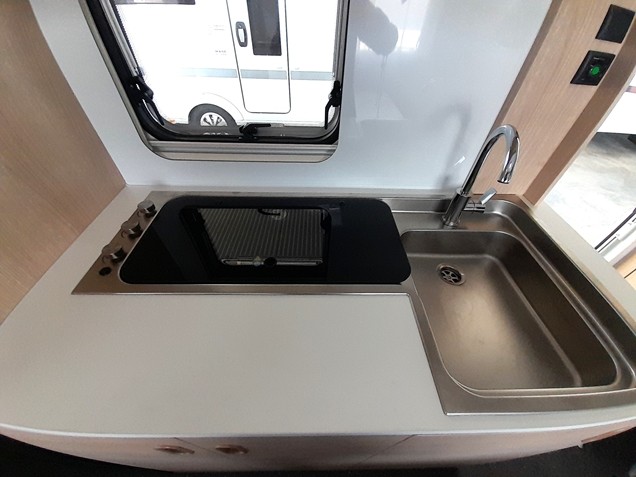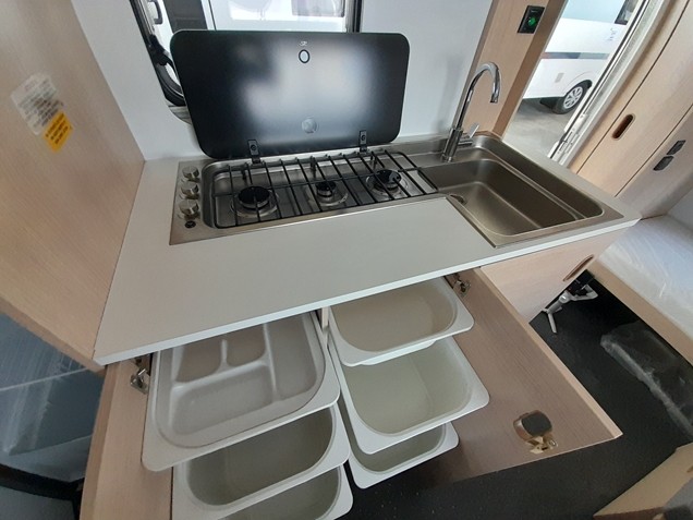 • Cocina 3 quemadores con encendido eléctrico + tapa de vidrio + fregadero acero inoxidable