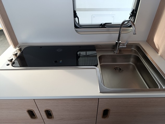 • Cocina 3 quemadores encendido eléctrico + tapa vidrio + fregadero acero inoxidable