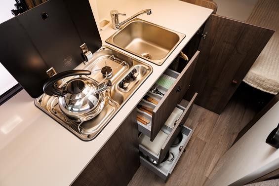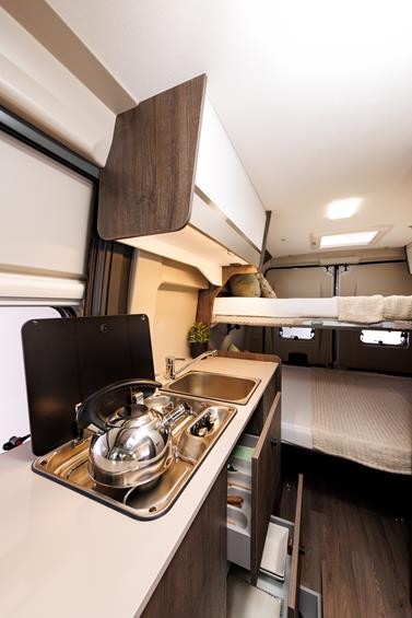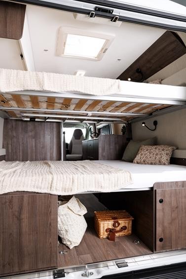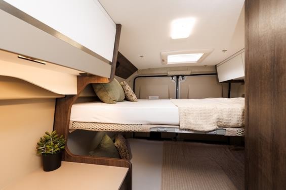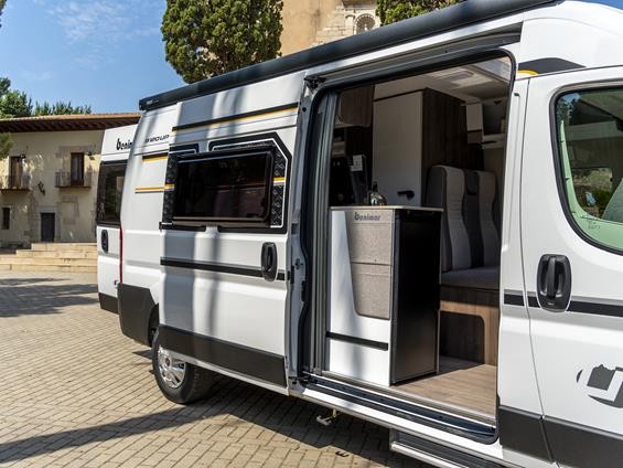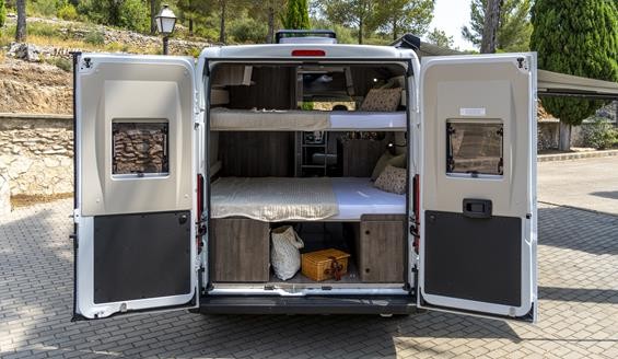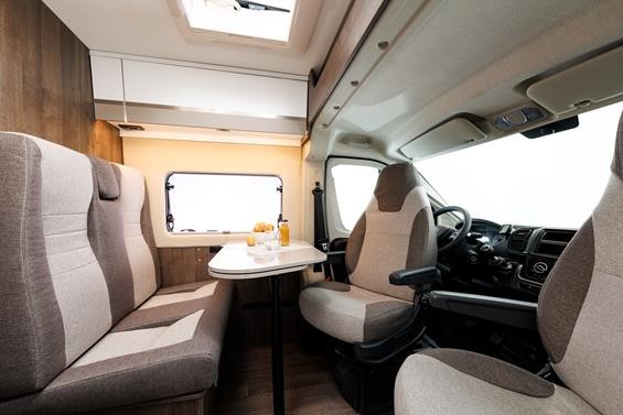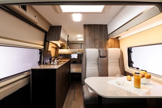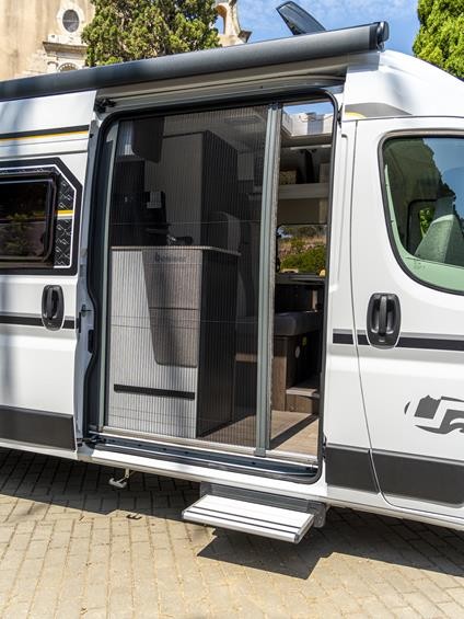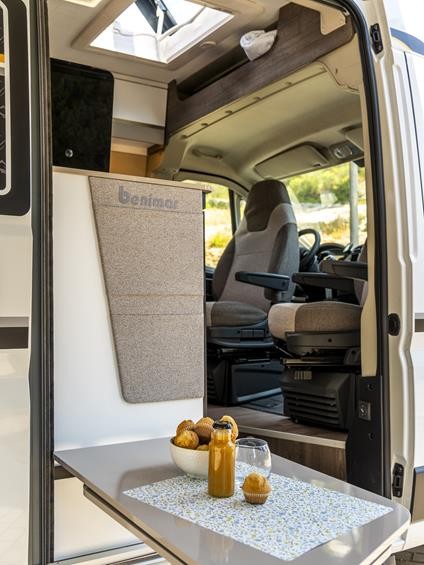 Pack Up: Oscurecedores plisados de cabina + ISOFIX en asientos salón + Sensores marcha atrás + Panel solar + Escalón eléctrico + Extensión mesa plegable + Fundas cabina + Gran claraboya en comedor + Mosquitera plisada en puerta lateral + Toldo