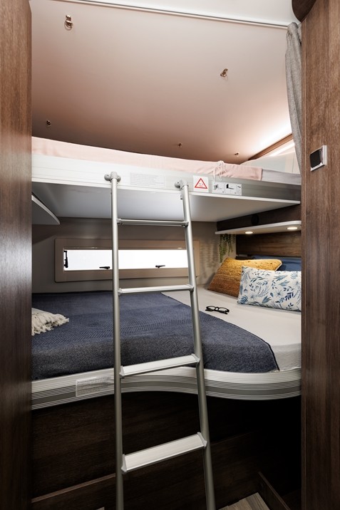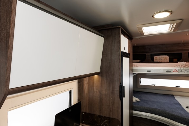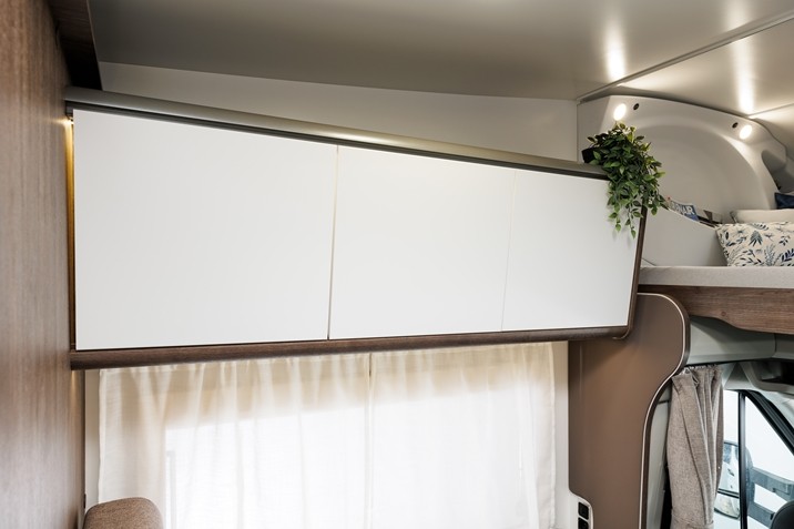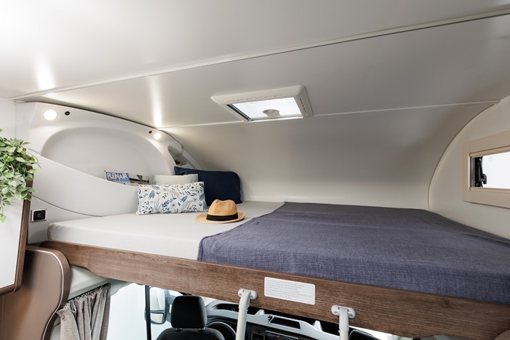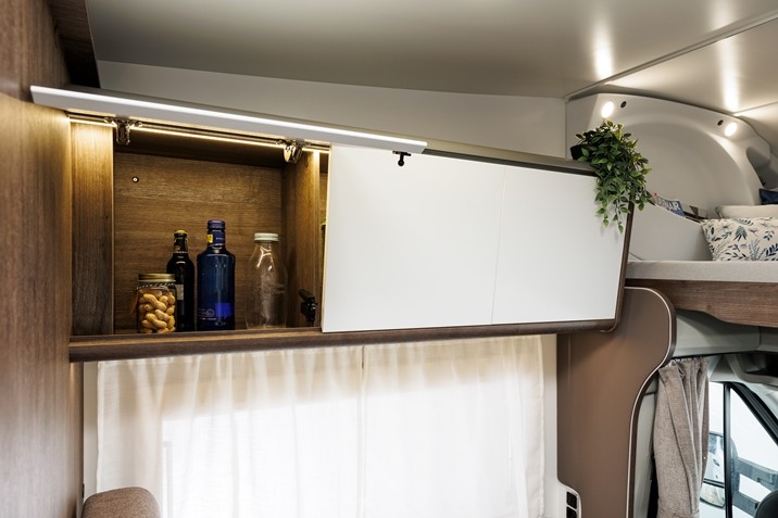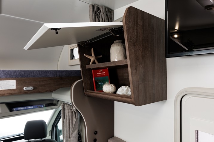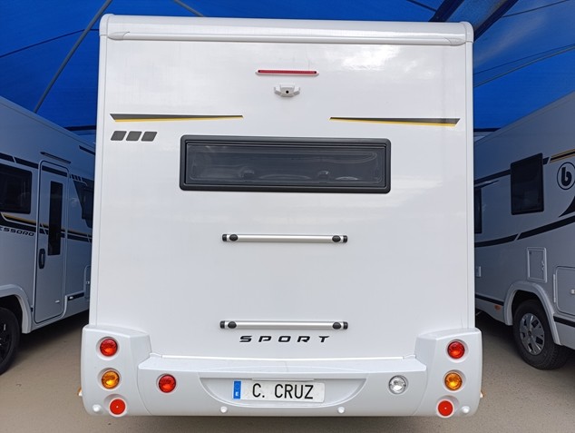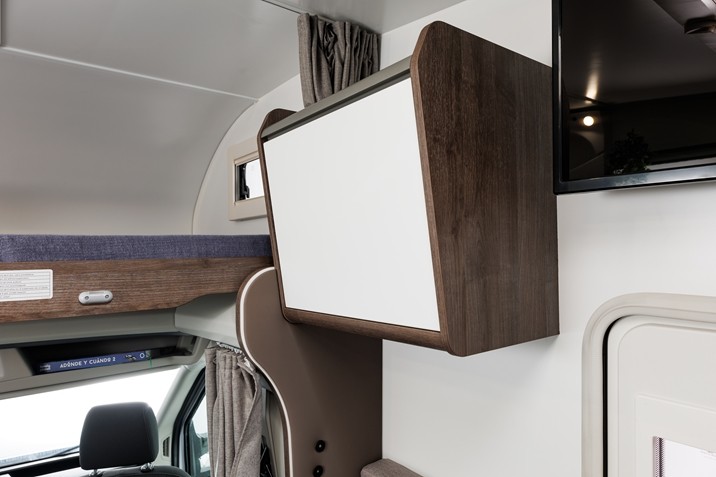 Pack Up: Panel solar + MPPT + Oscurecedores plisados de cabina + Puerta célula con 1 punto de cierre, ventana, oscurecedor y papelera + Kit viaje (batería célula, 2 calzos, cable 230V, manguera agua, extintor, chaleco, 2 triángulos, líquido WC) + TV 20" con antena omnidireccional + Luz exterior LED + Preinstalación 2ª batería célula + Sensores aparcamiento traseros + Toldo + Fundas cabina + Iluminación interior en altillos