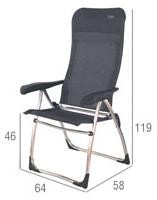 Sillon fabricado en aluminio con respaldo alto. Patas tubo de 25mm de diámetro, 7 posiciones de respaldo y diseño anatómico.