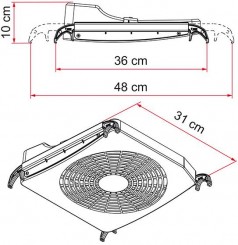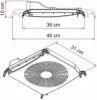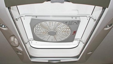 Turbo-kit 12 V con sistema de enganche telescópico para una fácil instalación sobre todas las claraboyas de 40 x 40 cm ( excepto las Fiamma ) a 50 x 70 cm cuando el vehículo está parado y