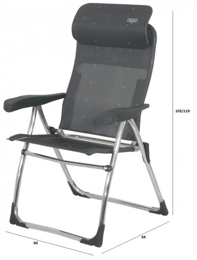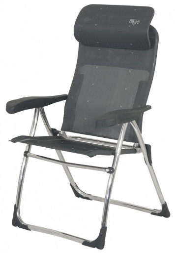 Sillon fabricado en aluminio serie Compact: Máxima comodidad en mínimo espacio. Su novedoso cabezal ergonómico regulable en altura ahorra hasta 16 cm en su posición plegada. Patas tubo de 25 Ø. Dispone de 7 posiciones de respaldo, respaldo extensible.