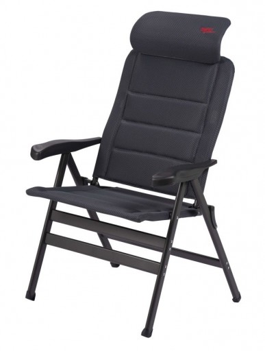 Sillón reforzado fabricada en aluminio con respaldo alto. Tejido acolchado AIR DELUXE 3D. 7 posiciones de respaldo, con cabezal regulable. Respaldo ergonómico y asiento extra ancho. Estructura en H reforzada internamente con una barra estabilizadora adicional y una capacidad de carga de hasta 200 Kg. Pintada en epoxi antracita. Plegado extraplano en 8 cm.