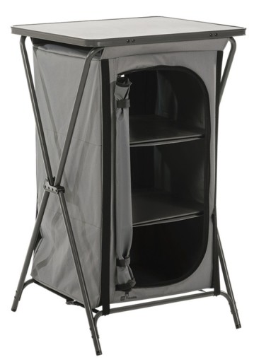 La unidad de almacenamiento compacta Toledo cuenta con tres compartimentos de almacenamiento tanto para su equipo de campamento como para su ropa. Usted mismo monta fácilmente la unidad de almacenamiento gracias a los estantes incluidos. Cierre el compartimento de almacenamiento deseado en el interior de la unidad y coloque un estante sobre él. Esto facilita la creación de espacio de almacenamiento para todas sus cosas. ¡Tú eliges cuántos compartimentos de almacenamiento necesitas! Cada uno de los estantes tiene una capacidad de carga de 5 kg.