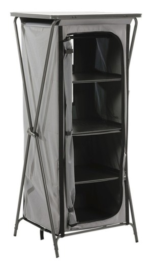 La unidad de almacenamiento compacta Toledo cuenta con cuatro compartimentos de almacenamiento tanto para su equipo de campamento como para su ropa. Usted mismo monta fácilmente la unidad de almacenamiento gracias a los estantes incluidos. Cierre el compartimento de almacenamiento deseado en el interior de la unidad y coloque un estante sobre él. Esto facilita la creación de espacio de almacenamiento para todas sus cosas. ¡Tú eliges cuántos compartimentos de almacenamiento necesitas! Cada uno de los estantes tiene una capacidad de carga de 5 kg.