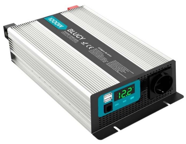 Convertidor Blugy 12V 1000W onda sinusoidal pura. Gracias a su máximo rendimiento, seguridad y fiabilidad, resultan perfectos para su instalación en campers, autocaravanas y todo tipo de vehículos.