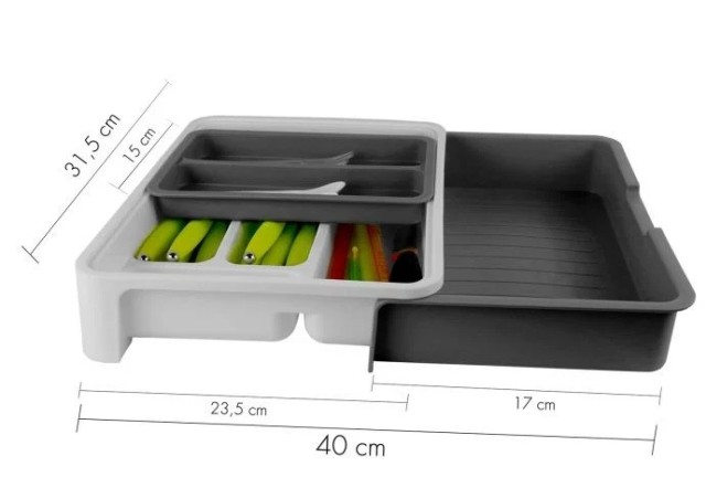 Debido a que es ajustable lo puede utilizar de diversas maneras. Si tiene pocos cubiertos puede hacer un cubertero pequeño, por el contrario, si tiene muchos cubiertos puede agrandarlo. Entonces tendrá nada menos que 7 compartimentos.