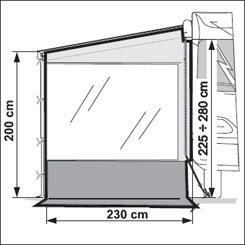 Práctico cierre lateral con faldón vinílico y gran ventana.