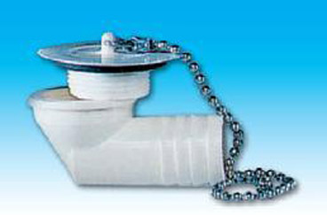 Desagüe acodado para tubo de 19 mm. con cadena.