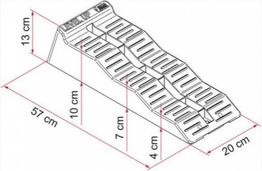 CalzoFiamma Up se ha diseñado para mantener su autocaravana perfectamente nivelada para un mejor funcionamiento del equipo, Cuando esté estacionado en un terreno irregular. Fiamma Level-Up es de múltiples niveles y se sitúa en una altura máxima de 13 cm con un acabado antideslizante, que agarra los neumáticos del vehículo. Subir de nivel es realmente ligero y se ha hecho uso de material inoxidable y resistente, que es también muy fácil de limpiar. Ideal para Autocaravanas de gran tamaño con un peso máximo por eje de 5 toneladas. No se agrieta ni se rompe como la madera.