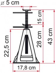 Cada gato es capaz de soportar una carga máxima de 1000 kg. Proporciona un soporte estable y seguro para casi cualquier aplicación. Fácil de ajustar en altura de 28 - 43cm con la manivela. Los gatos pueden ser apilados para un almacenamiento compacto.